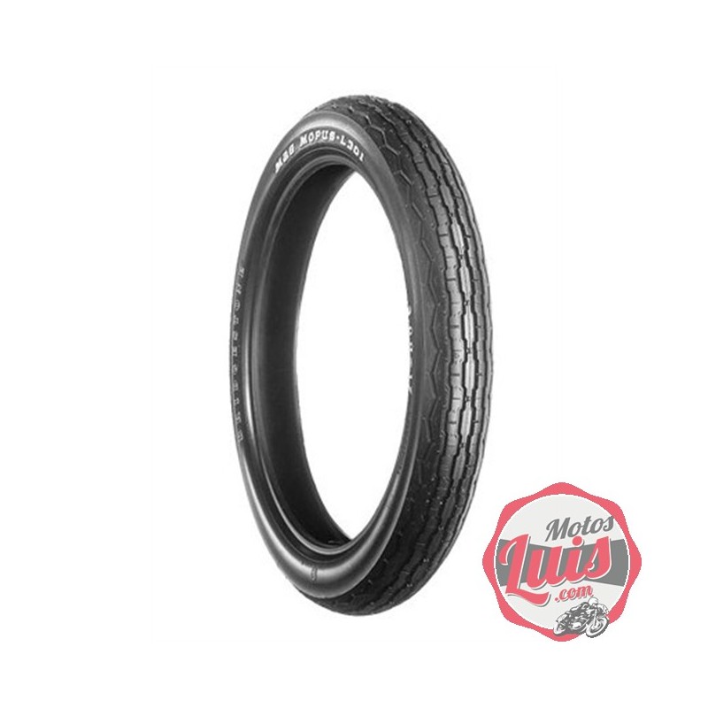 Cubierta 3.00-17 pulgadas de la marca Bridgestone de dibujo rallado.