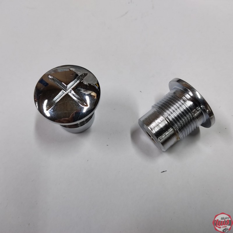 Juego de tapones de horquilla para Montesa Cota 25, realizados en aluminio con la "M" de montesa grabada en la parte superior. Precio por pareja.