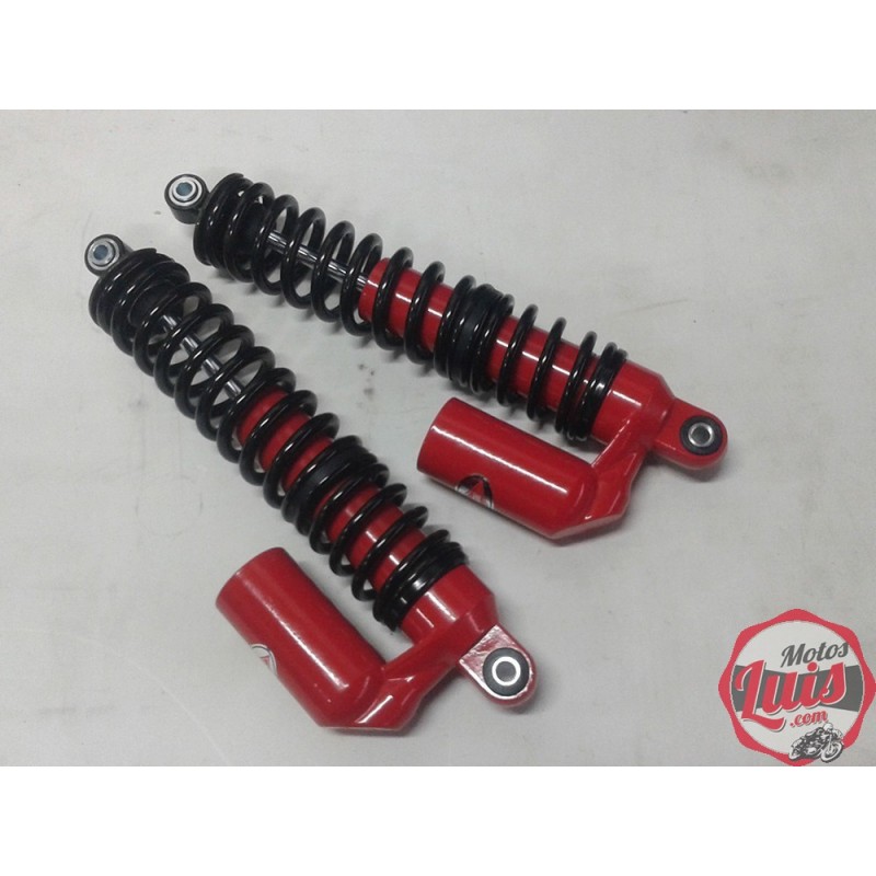JUEGO DE AMORTIGUADORES CON MUELLE VISTO DE 300 MM ENTRE CENTRO DE AGUJEROS PARA MOTOS DE CARRETE