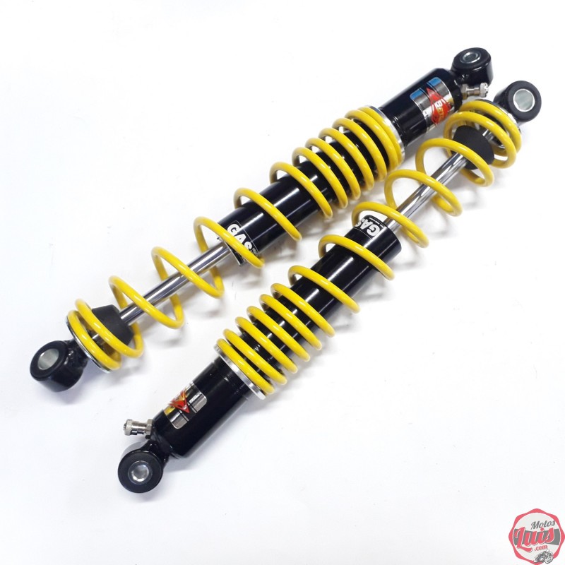 JUEGO DE AMORTIGUADORES CON MUELLE VISTO DE 300 MM ENTRE CENTRO DE AGUJEROS PARA MOTOS DE CARRETE