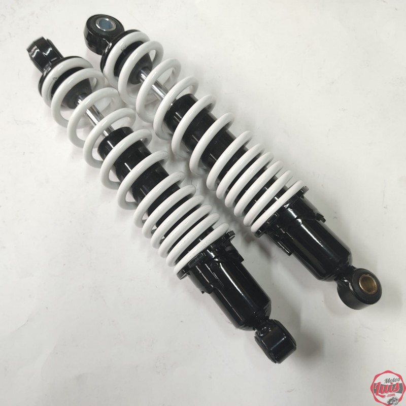 JUEGO DE AMORTIGUADORES CON MUELLE VISTO DE 300 MM ENTRE CENTRO DE AGUJEROS PARA MOTOS DE CARRETE