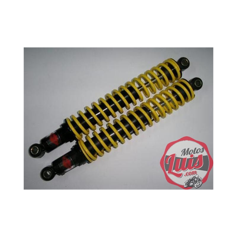 JUEGO DE AMORTIGUADORES CON MUELLE VISTO DE 300 MM ENTRE CENTRO DE AGUJEROS PARA MOTOS DE CARRETE