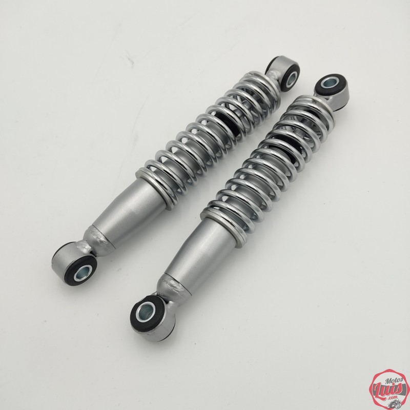 JUEGO DE AMORTIGUADORES CON MUELLE VISTO DE 300 MM ENTRE CENTRO DE AGUJEROS PARA MOTOS DE CARRETE