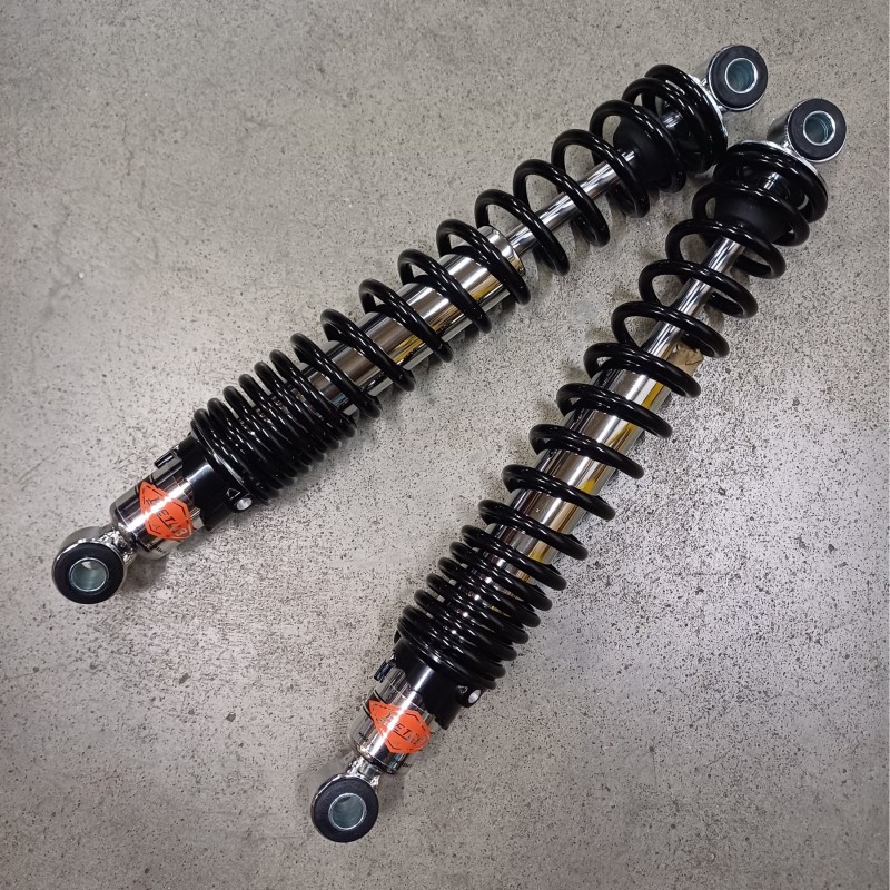 JUEGO DE AMORTIGUADORES CON MUELLE VISTO DE 300 MM ENTRE CENTRO DE AGUJEROS PARA MOTOS DE CARRETE
