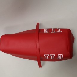 Funda de asiento para DERBI TT8 en color rojo, Incluye tira central, lista para montar.