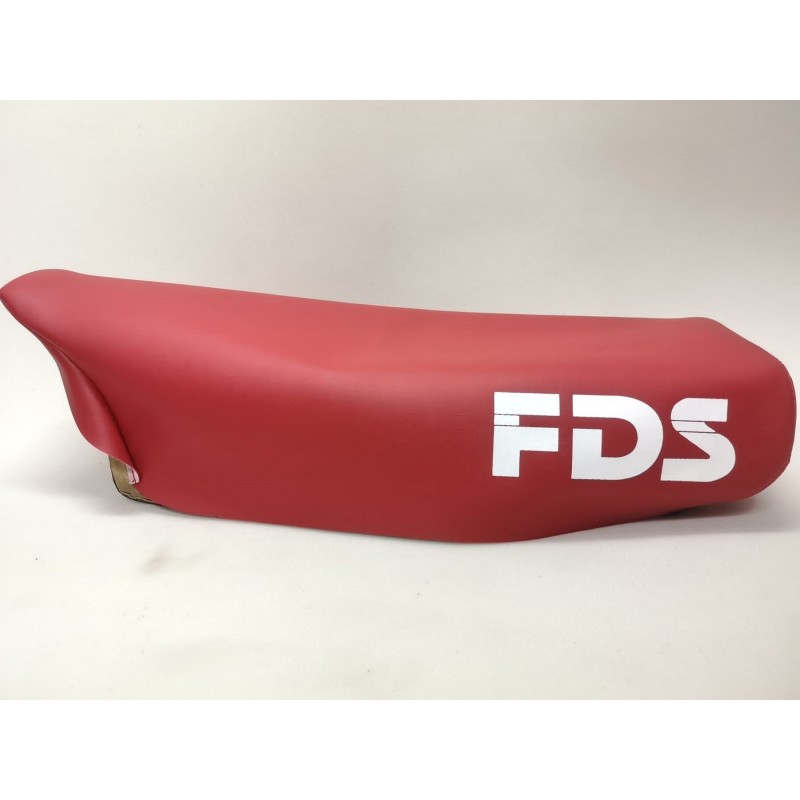 Funda de asiento para DERBI C6, negra con serigrafia en ROJO como la original, lista para montar sobre la espuma original. Las fotografias del asiento montado son para indicar como queda una vez puesto sobre una espuma original en buen estado.