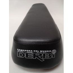 Funda de asiento para DERBI C7, negra con serigrafia en blanco como la original, lista para montar.