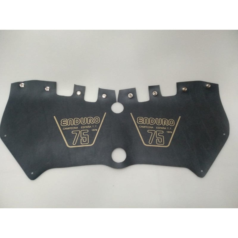 Funda cubrefiltro de montesa enduro 75, marcada con la cilindrada, con todas las perforaciones hechas y lista para montar con sus corchetes. Nueva
