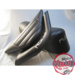 Funda de asiento para Puch Magnum X, realizada en color negro, con reborde para engancharla al armazon original, sustituye a la funda original. SERIGRAFIADA