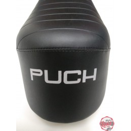 Funda de asiento para Puch Minicross Super 3 en color negro, con serigrafiado blanco con la marca en la parte trasera. Identica a la original. NUEVA. Lista para montar. SERIGRAFIADA