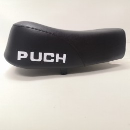 Funda de asiento para Puch Minicross Super 3 en color negro, con serigrafiado blanco con la marca en la parte trasera. Identica a la original. NUEVA. Lista para montar. SERIGRAFIADA