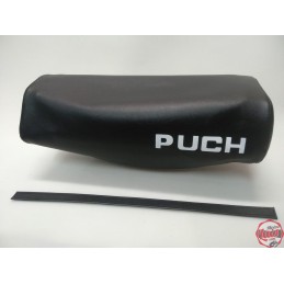 Funda de asiento para Puch Cobra Profesional replica Monjonell / Coronil en color negro, con serigrafiado blanco con la marca en la parte trasera. Identica a la original. NUEVA. Lista para montar. SERIGRAFIADA