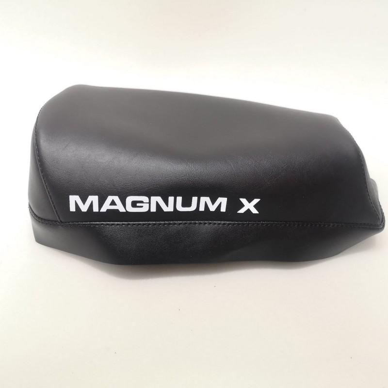 Funda de asiento para Puch Minicross Super 3 en color negro, con serigrafiado blanco con la marca en la parte trasera. Identica a la original. NUEVA. Lista para montar. SERIGRAFIADA