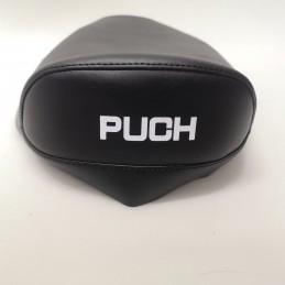 Funda de asiento para Puch Dakota 2ª Serie en color negro, con serigrafiado blanco con la marca en la parte trasera. Identica a la original. NUEVA. Lista para montar. SERIGRAFIADA