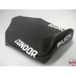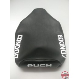 Funda de asiento para Puch Dakota 2ª Serie en color negro, con serigrafiado blanco con la marca en la parte trasera. Identica a la original. NUEVA. Lista para montar. SERIGRAFIADA