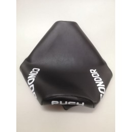 Funda de asiento para Puch Cobra Profesional replica Monjonell / Coronil en color negro, con serigrafiado blanco con la marca en la parte trasera. Identica a la original. NUEVA. Lista para montar. SERIGRAFIADA