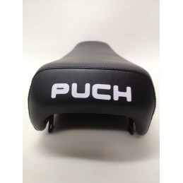 Funda de asiento para Puch Minicross Super 3 en color negro, con serigrafiado blanco con la marca en la parte trasera. Identica a la original. NUEVA. Lista para montar. SERIGRAFIADA