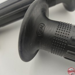 Juego de puños con Logotipo IDEAL en color ROJO y lengüeta en el costado de aspecto Clasico. Con diametro 22 mm. en ambos lados, montado habitualmente en bicicletas clasicas tipo Motoretta, Bicicross y otras.