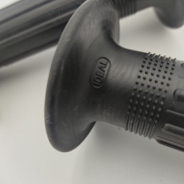 Juego de puños con Logotipo IDEAL en color NEGRO y lengüeta en el costado de aspecto Clasico. Con diametro 22 mm. en ambos lados, montado habitualmente en bicicletas clasicas tipo Motoretta, Bicicross y otras.