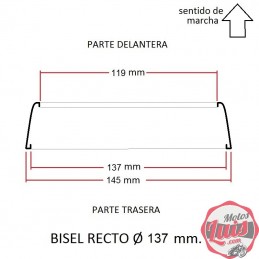 Bisel de faro de diametro 139 milimetros en el acople, valido para varios tipos de faro. Medidas