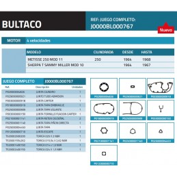 Juego de juntas para Bultaco Mercurio y Metralla MK2. Validas para los siguientes modelos de bultaco:Mod.23-Metralla MK2Mod.26-Matador MK3Mod.27/49-SherpaTMod.28/57/79-Campera MK2Mod.42-Pursang MK2Mod.44/45-Sherpa S175/200Mod.66/67-Sherpa S175/200 MK2Mod.48/68-Pursang 250 MK3/MK4Mod.76/77-Lobito 175/200 MK4Mod.80/91-Sherpa T250Mod.85-Alpina...