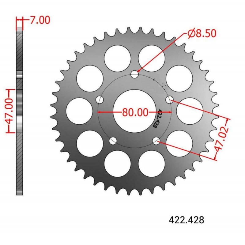 Corona para Montesa Enduro H7 80 / 125 y otras. Con paso de Cadena 428 y numero de dientes a seleccionar.