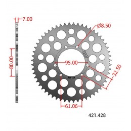 Corona para Puch Cobra 75 y Rieju MR80 Segunda Serie. Con paso de Cadena 420 y numero de dientes a seleccionar. Diametro interior de 80 mm.Realizada en duraluminio ERGAL de la mejor calidad que asegura una gran durabilidad.