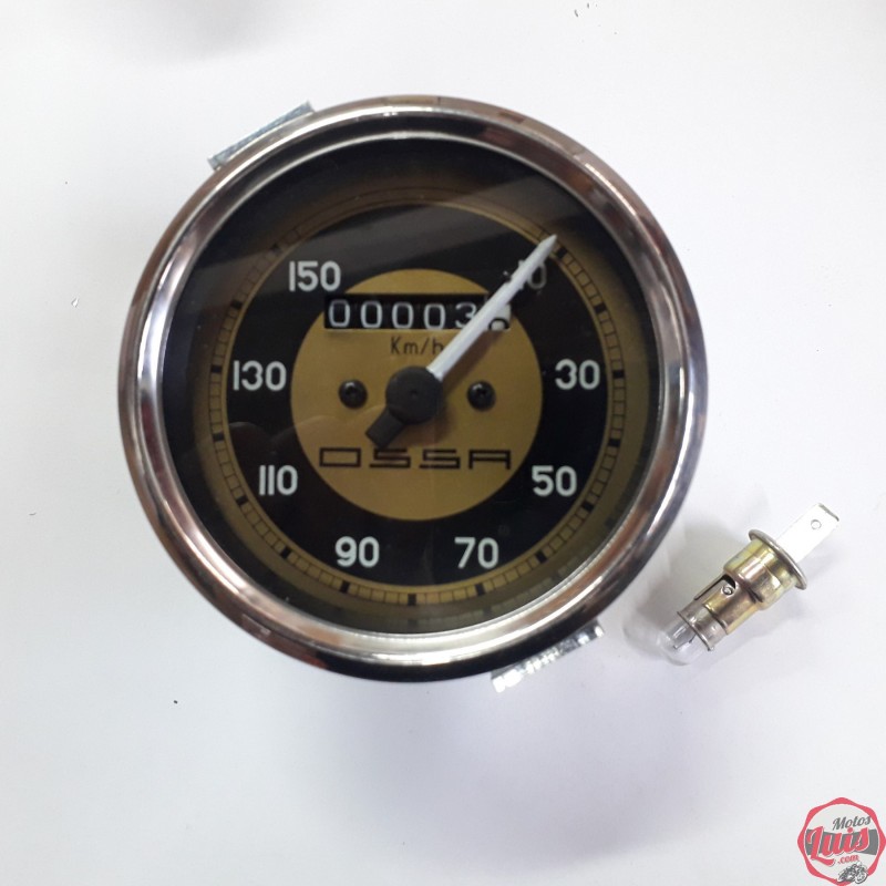 Reloj cuentakilometros para OSSA Yankee 500 CON INDICADOR PARCIAL DE KILOMETROS, con indicacion de hasta 200 km/h, diametro de la esfera de 80 mm como el original y rosca inferior de paso 16/100