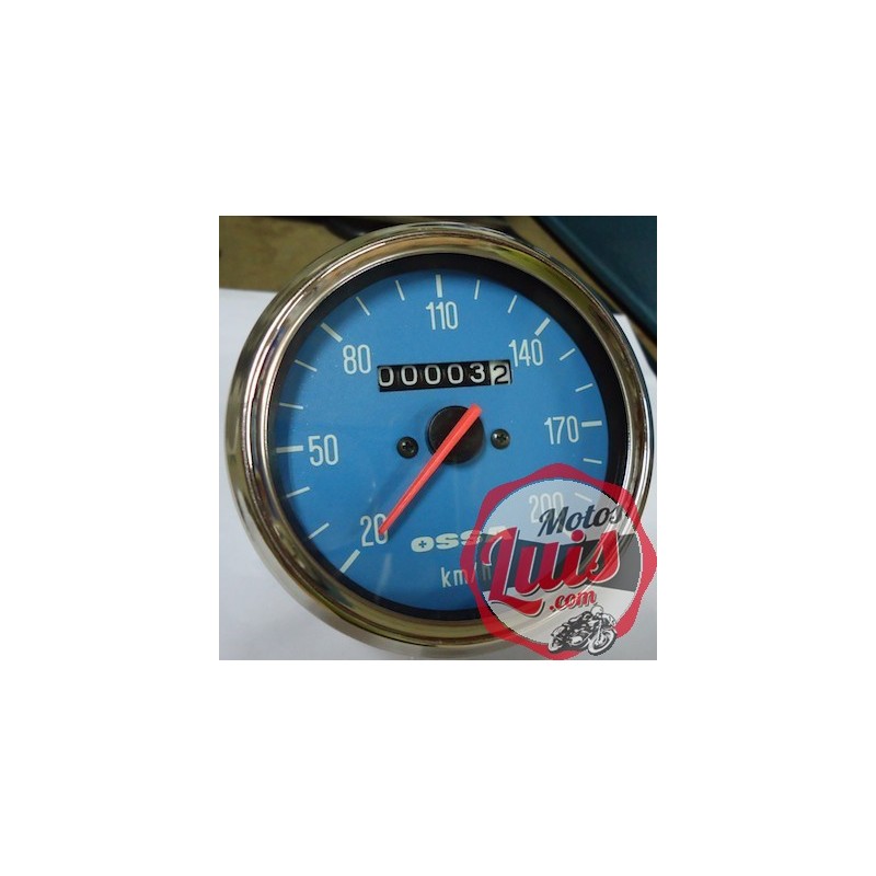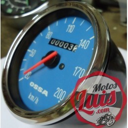 Reloj cuentakilometros para OSSA Yankee 500 CON INDICADOR PARCIAL DE KILOMETROS, con indicacion de hasta 200 km/h, diametro de la esfera de 80 mm como el original y rosca inferior de paso 16/100