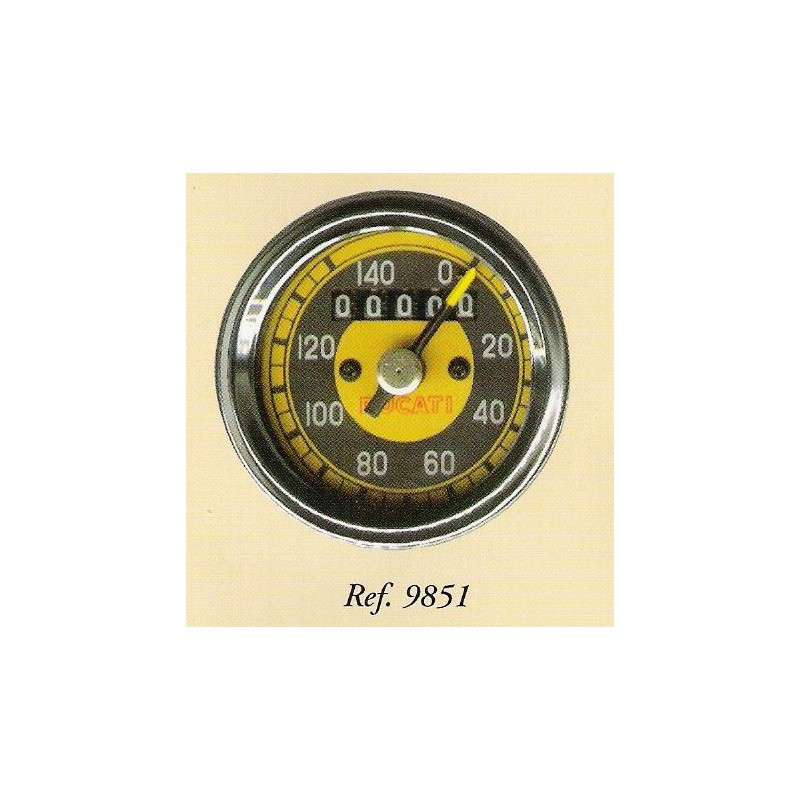 Reloj cuentakilometros para OSSA, modelo rectangular para modelos de 125 cc y 160 cc. Se coloca empotrado en el faro y la velocidad que marca es de 120 km/h.
