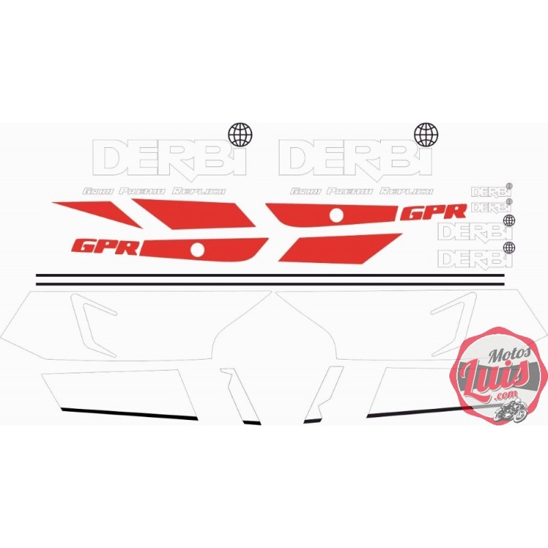 Kit de adhesivos motos clasicas para DERBI RC, juego valido para la version de 125 y de 250. Conjunto entero en blanco y negro. Juego Pegatinas Completo - Vinilo para Moto, máxima Calidad.