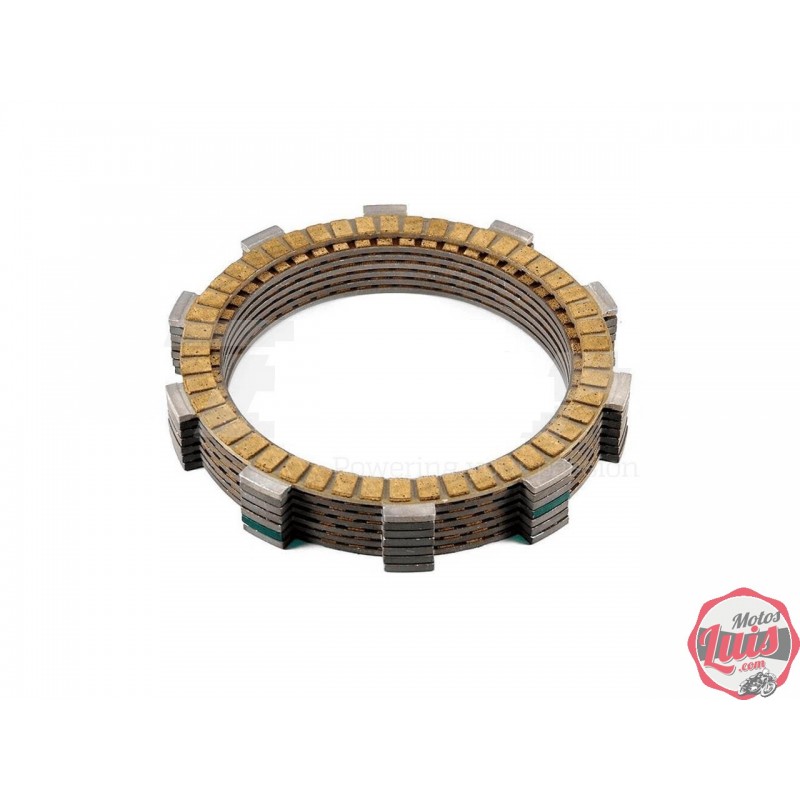 Kit de discos de embrague de fibra para modelos de bultaco de 5 o 6 velocidades o modernas, con las almenas interiores redondeadas.