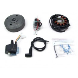 Encendido electronico completo para convertir completamente la moto a 12 voltios. Para modelos de ISO 125 con eje de cigueñal estandar 17-15 mm. NUEVO