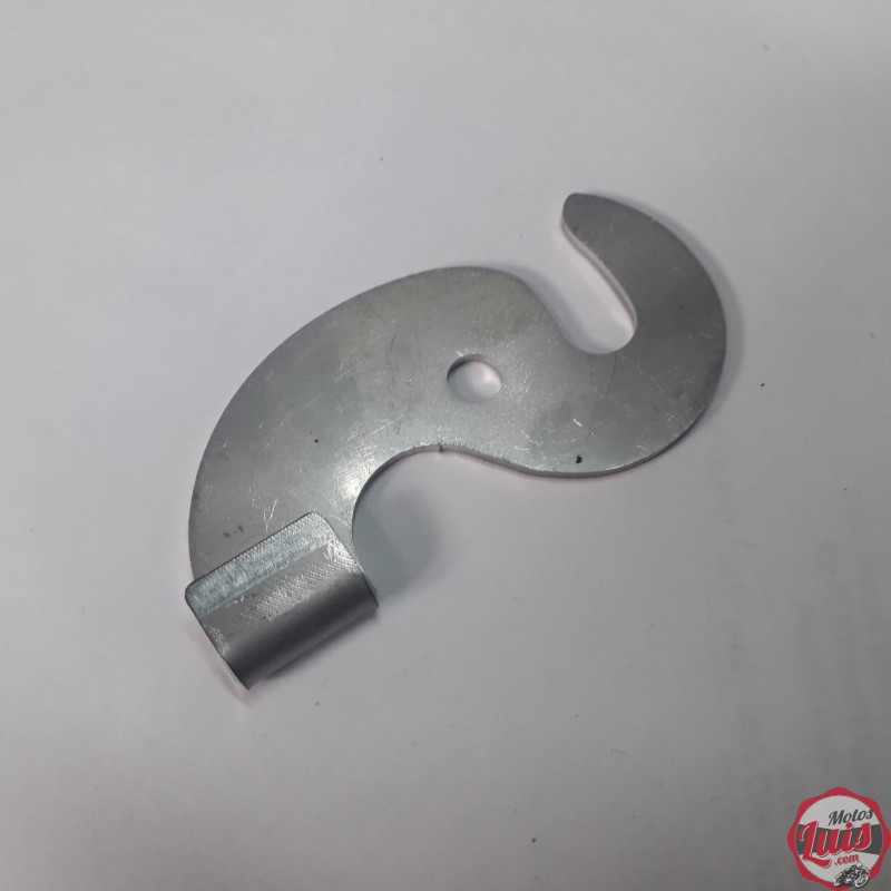 Pletina de proteccion del carter para Montesa Enduro y Cota, se coloca alrededor del piñon de salida del motor en los anclajes del chasis y evita que, en caso de rotura, la cadena pueda dañar el carter motor. Montado de serie en modelos de Enduro y Trial dispone de pivotes para la fijacion de la goma que lo complementa. Con soporte inferior.