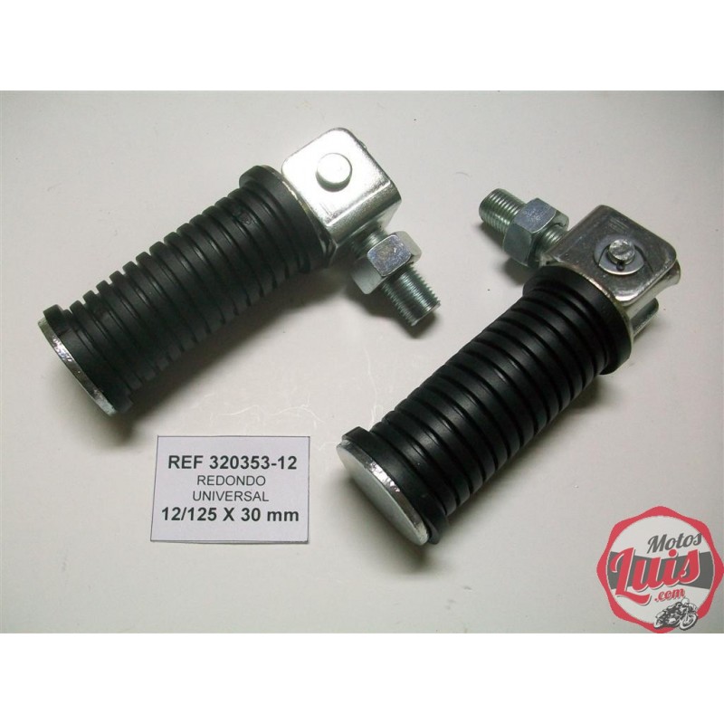 Juego de dos estriberas universales para ciclomotor, preparadas para fijar en los tornillos de los amortiguadores o en cualquier taladro que se tenga. El agujero de fijacion es de 12 mm.