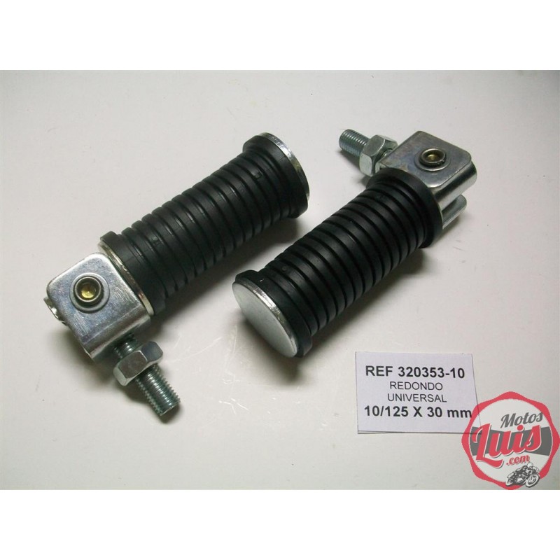 Estriberas con tornillo cilindricas de gran calidad, con tornillo de metrica 10, con vastago de longitud 25 mm, adaptable a la gran mayoria de moto nacional con estriberas traseras en el chasis.