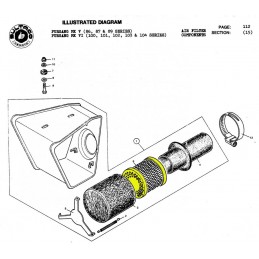 Conjunto de filtro de aire para Bultaco Sherpa Kit Campeon, realizado en metal, fiel replica del original, con salida por abajo. Acabado en prepintado de color negro. Nuevo