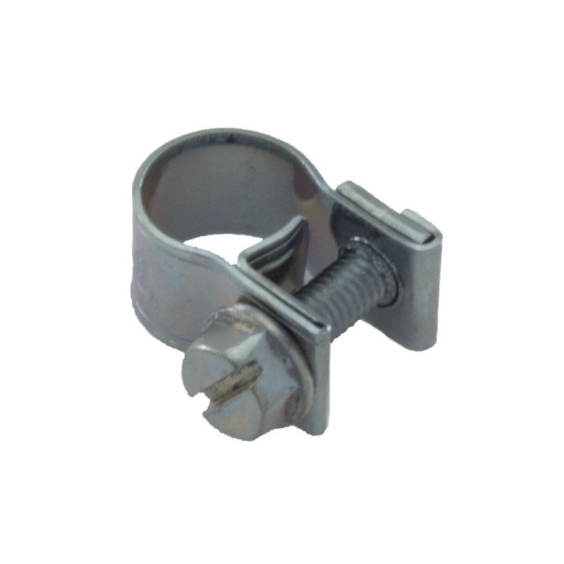 Abrazadera para goma de gasolina de diametro 10 - 12 mm. Tornillo de destornillador plano. Precio por unidad.