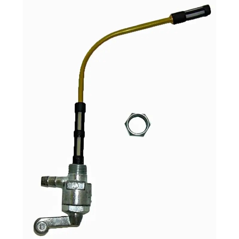 Grifo de gasolina, con cuerpo de diametro 15 mm. para depositos en los que el grifo se sujeta con abrazaderas. Accionamiento mediante palomilla.