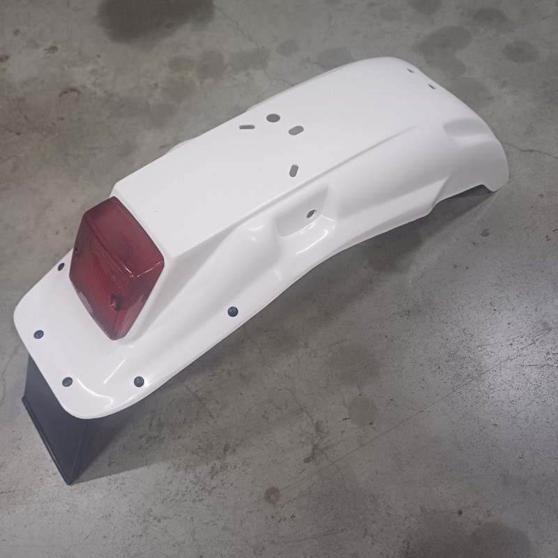 Guardabarros trasero con luz tipo Rieju-Puch en tamaño ancho en color BLANCO. NUEVO.