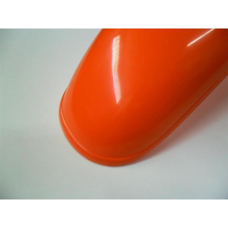 Guardabarros delantero con parte superior plana en la fijacion con la tija, valido para motos de 49, 75 y 125 cc. Queda muy bien montado en Montesa Enduro 75L, Derbi Cross, Derbi Diablo, Puch Minicross e incluso alguna bultaco con guardabarros alto.
