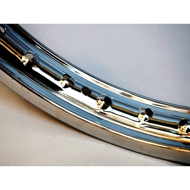 Llanta de 2.50 x 16 pulgadas de 36 agujeros. En cromado