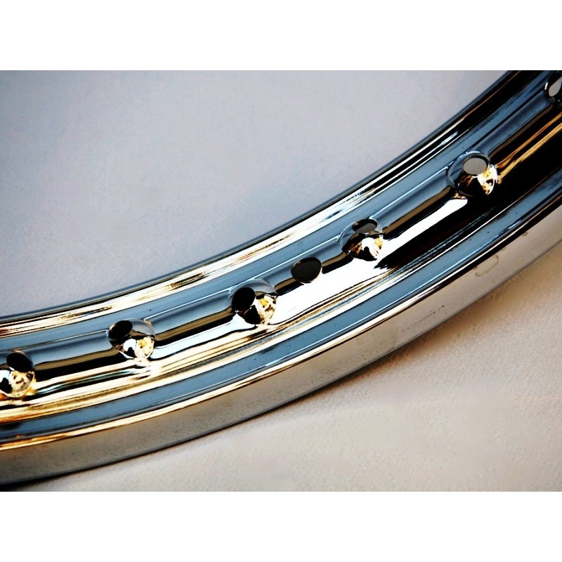Llanta de 1.20 x 19 pulgadas de 36 agujeros. En cromado