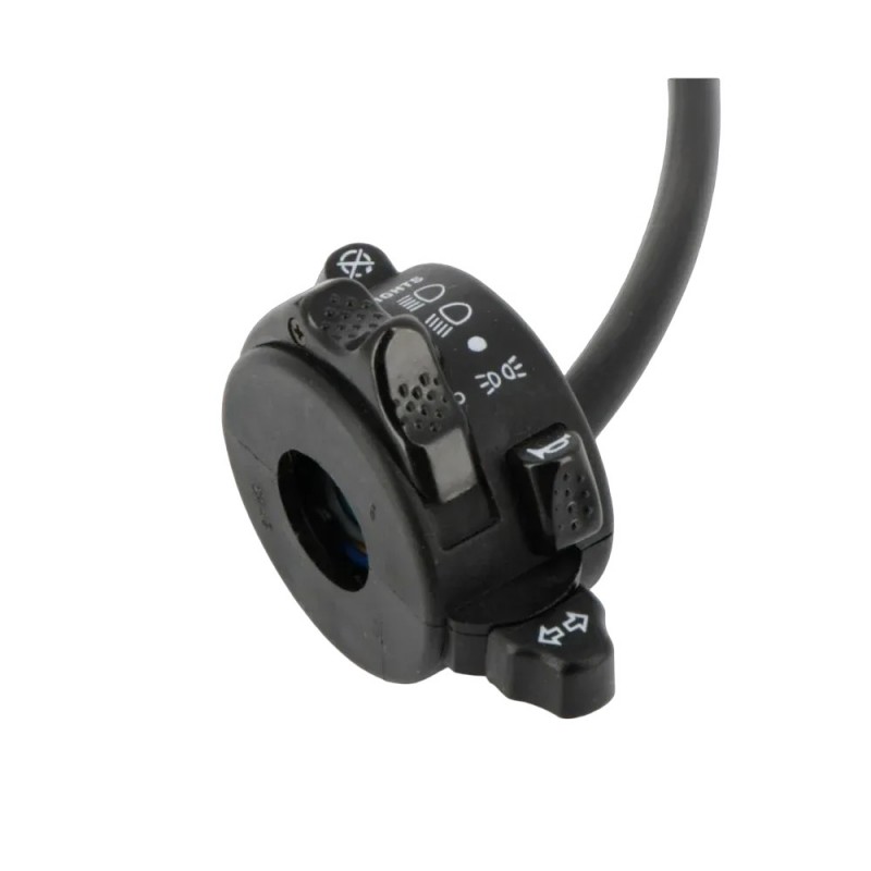 Llave de luces de aspecto clasico, cilindrica, con dos posiciones, se puede utilizar para el cambio entre luces cortas y largas o bien en apagado/encendido, valida para manillar estandar de diametro 22 mm