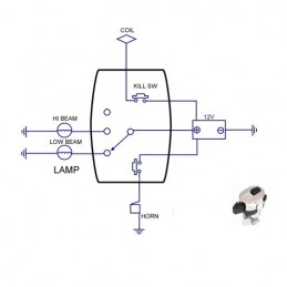 Llave de luces para montesa Impala sport y Ducati, interruptor con posicion de cortas y largas (el encendido y luz de posicion se acciona desde la llave del faro), dos pulsadores en su parte superior para funcion de rafagas y claxon.