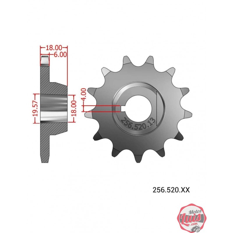 Piñon para Montesa, cilindradas grandes con eje estriado y fijacion del piñon mediante tuerca. Valido para Montesa Enduro 250/360, Cota 349 y otras. Con paso de Cadena 520 y numero de dientes a seleccionar. Diametro interior de 17-20 mm.Numero de dientes a elegir