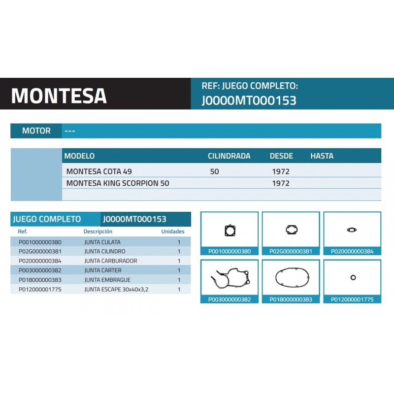 Juego de juntas adaptable a Montesa Cappra 250 del año 1967, Cappra GP, Sport 250 y Texas 250. Re