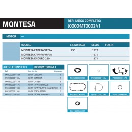 Juego de juntas adaptable a Montesa Cappra 250 VR74 / 250 VR75 / Enduro 250H. Realizadas con pape