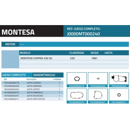 Juego de juntas adaptable a Montesa Cappra 250 VR74 / 250 VR75 / Enduro 250H. Realizadas con pape