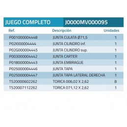 Juego de juntas adaptable a MV Agusta 125 cc con motor de 4 Tiempos. Realizadas con papel de junt